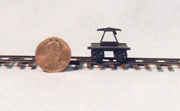 This is a picture of a HOn30 handcar made from a modified HO handcar.