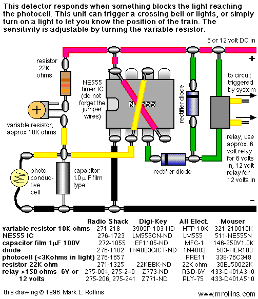 A fairly simple train detector using ambient light and a photocell,